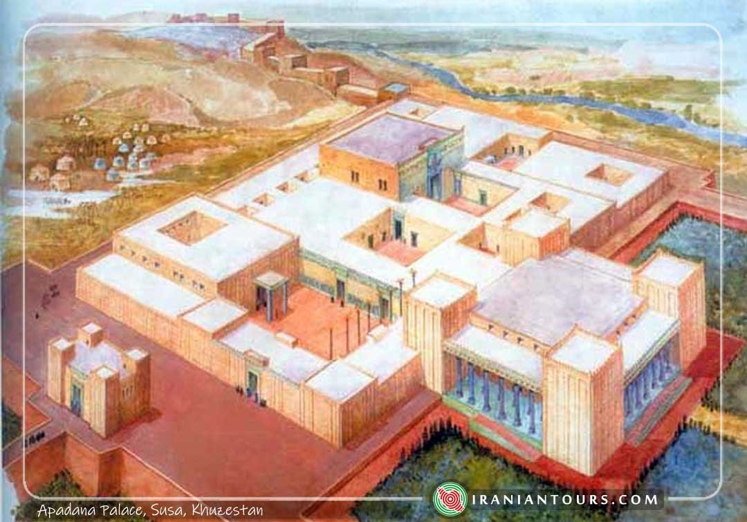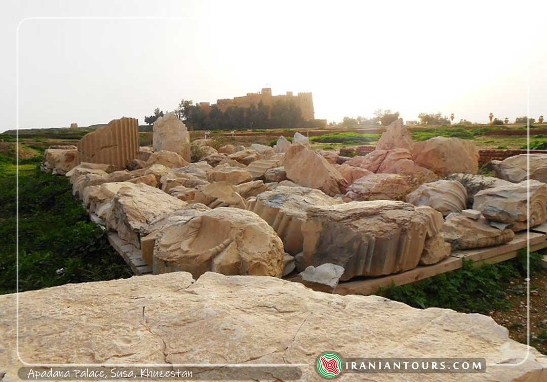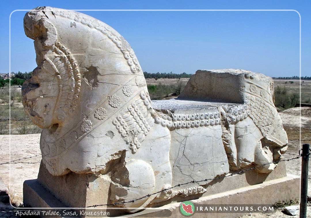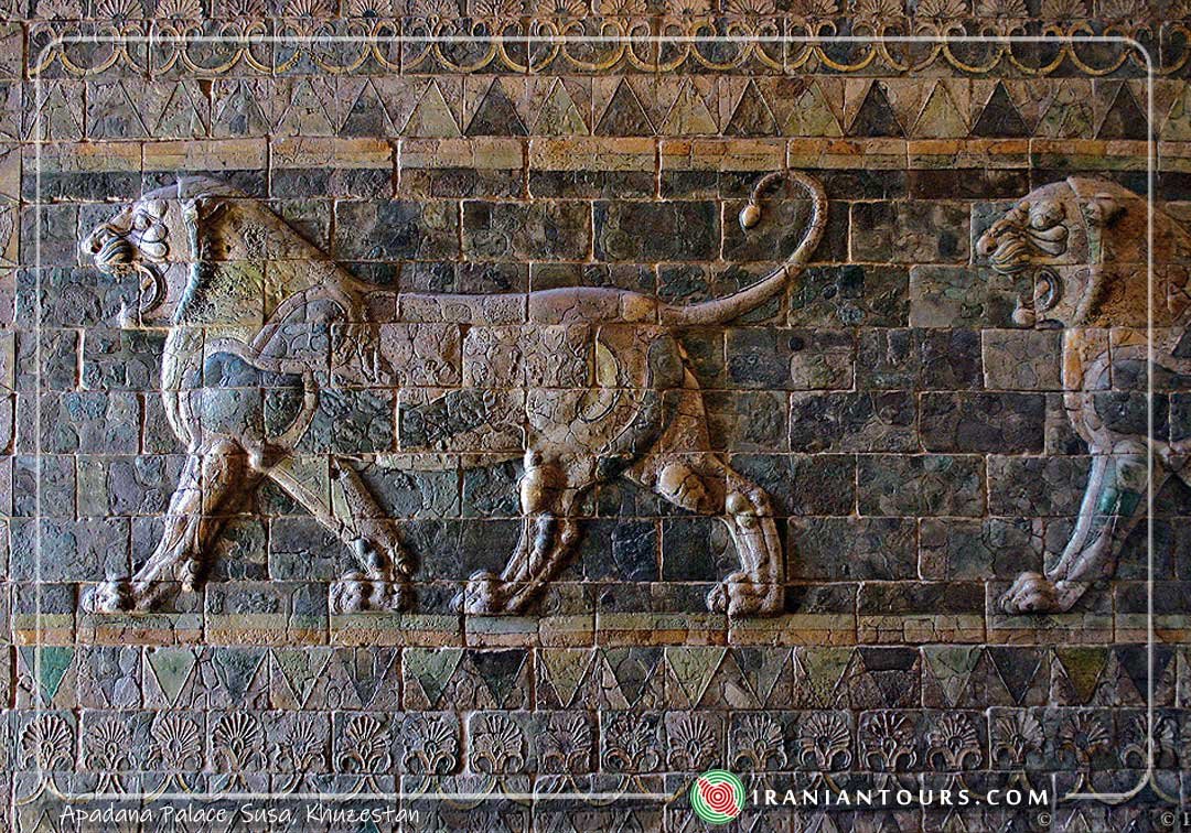 Apadana Palace was the winter residence of Achaemenid kings. This palace was built by the order of Darius the Great between 521 and 515AD on Elamite remains. The walls were in mud-brick and columns were out of stone. The palace was comprised of different sections including an audience hall, harem, gate, reception hall, and 3 internal courtyards. Interior walls were decorated with glazed bricks depicting soldiers, winged lions, and lotus. Some of these glazed bricks are currently displayed at different international museums. The palace had an area of 10434 sq. meters and was renovated by Ardeshir II.