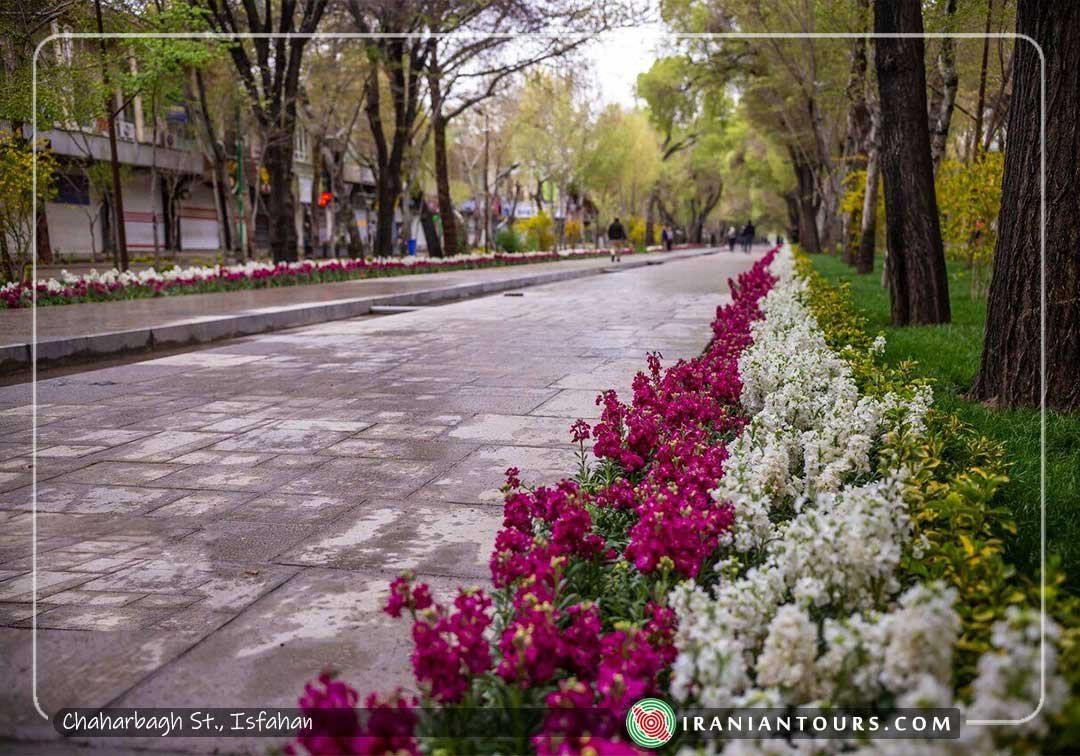 Chahar Bagh consisted of three parts; Central Chahar Bagh, started from present Municipality, stretched to the Allah Verdi Khan Bridge  (Sio-Se-Pol). The upper Chahar Bagh began from the Allah Verdi Khan Bridge to the Sofeh Mountain and the lower Chahar Bagh, from present Municipality to Shohada Square.