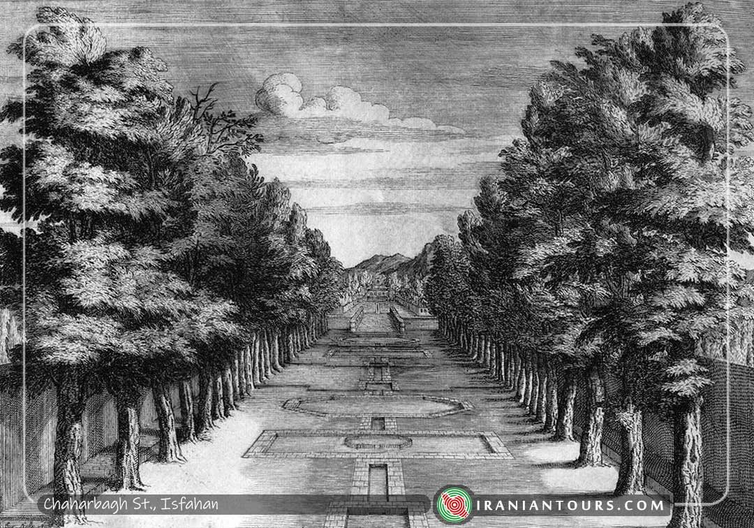 During Safavid dynasty beautiful orchards were built on the west side of Chahar Bagh St. Royal palaces were constructed from Chahar Bagh Ave to the Royal Naghshe Jahan Square.