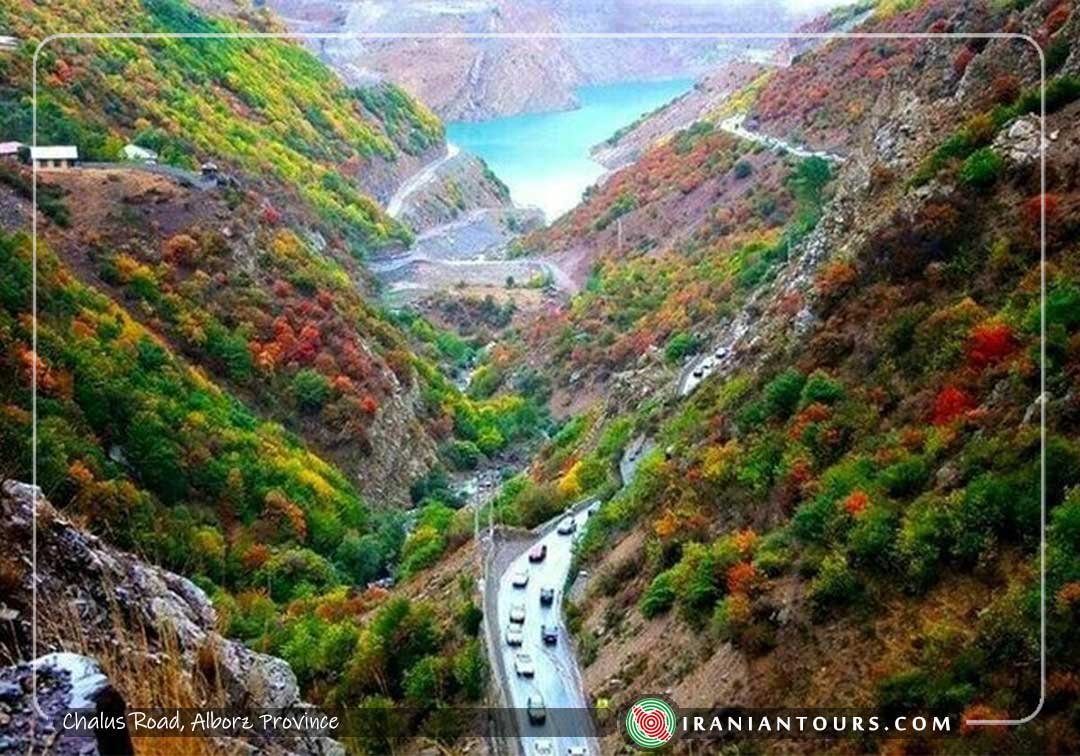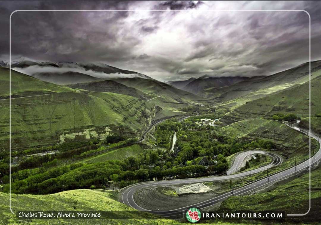 Chalus Road, or Road 59, is a beautiful road connecting Tehran and Karaj to Chalus on the Caspian Sea coasts. It passes through Alborz Mountains and Hirkani forests and offers spectacular scenes. The road is 160km. and was constructed in 1930s under Reza Shah’s reign.