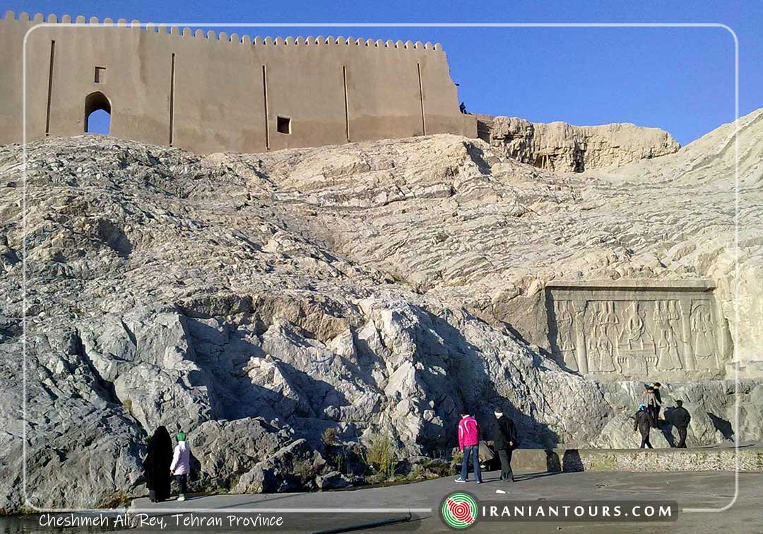 Cheshmeh Ali is the name of an ancient ground in the southern hillsides of Alborz and in the ancient land of Rey. A water spring is boiling from the soil of this land that backs to the six to eight thousand years ago. This large rock was the place of Reybandi castle or Tabrak Castle related to about 1200 years ago. The ancient name of Cheshmeh Ali was mentioned in the historical reports of Souren that is the name of one of the great Parthian dynasties. Rey city, the spring capital of Parthian empire, was the place of Anahita worship in Iran with plenty of water. Therefore, there is a tight relationship between this spring and Anahita goddess, the goddess of water and fertility in ancient Iran.