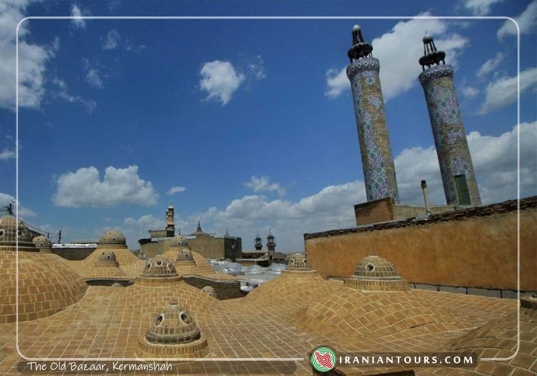 One of the noticeable and important buildings of Kermanshah is its large and ancient market (bazaar), and its primary structure is related to the Qajar period. This bazaar is adorned in a splendor style. The goods available here are: local colored apparel, handicrafts like giveh (a local foot-ware), shoes, carpet, Kilim, wooden kitchenware, leather and felt and hand-woven articles.