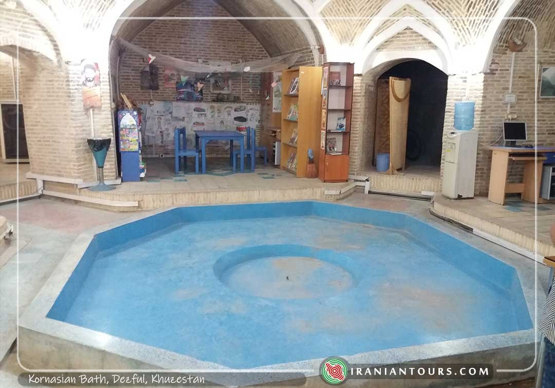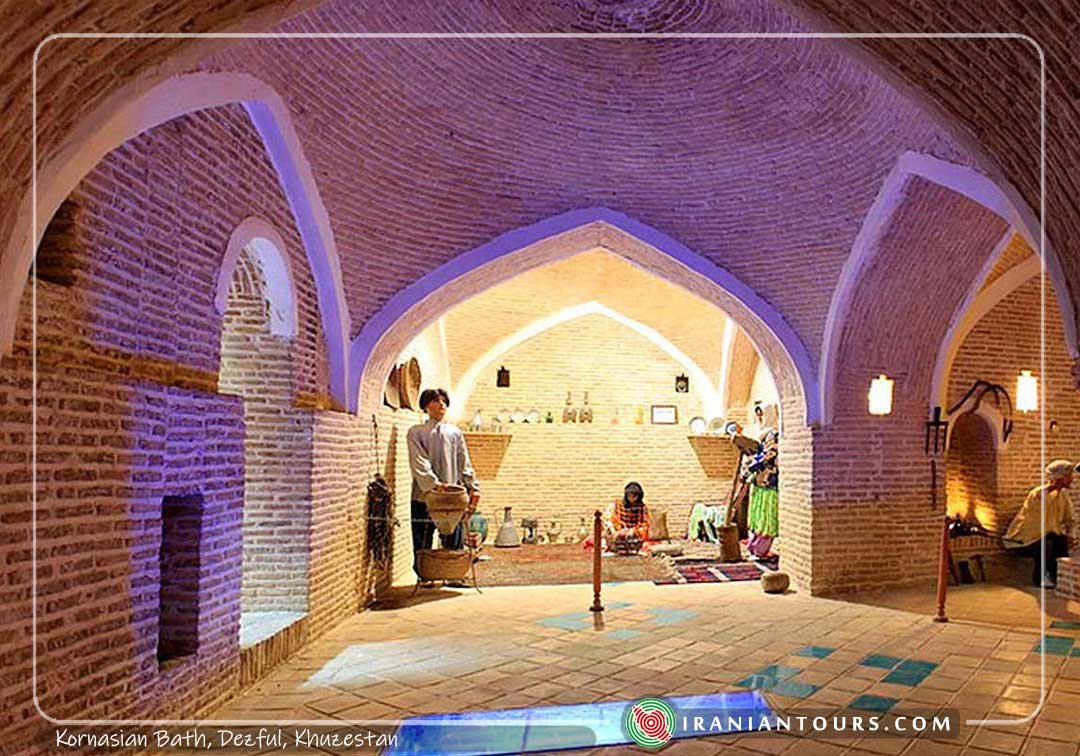 Kornasiyan Bath, now used as the Anthropology and Handicrafts Museum of Dezful, is a sample of old Iranian bathhouses. The museum has wax figures showcasing the customs, traditions and traditional professions of Dezful. Manuscripts by Dezful personalities and metalwork are displayed in the hot chamber (garm-khaneh) of the museum.