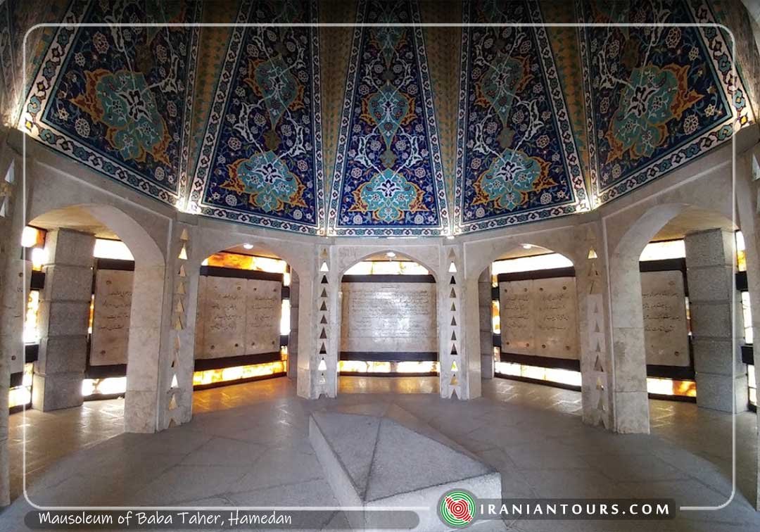 The mausoleum of Baba Tahir is located on a hill on the north-western part of Hamadan. The original mausoleum dates back to the Seljuk period, however, it underwent multiple reconstructions during later times. In the 12th century, an octagonal tower was built over the grave of Baba Tahir which was gradually ruined during the years. Another brick structure was built later in Reza Shah’s era, which got renovated during 1950-1952. During this renovation, a tile, dating back to the 13th century, was found which is kept in the National Museum of Iran. Later, in order to build a more fitting mausoleum, Mohsen Foroughi designed the current structure in 1970.