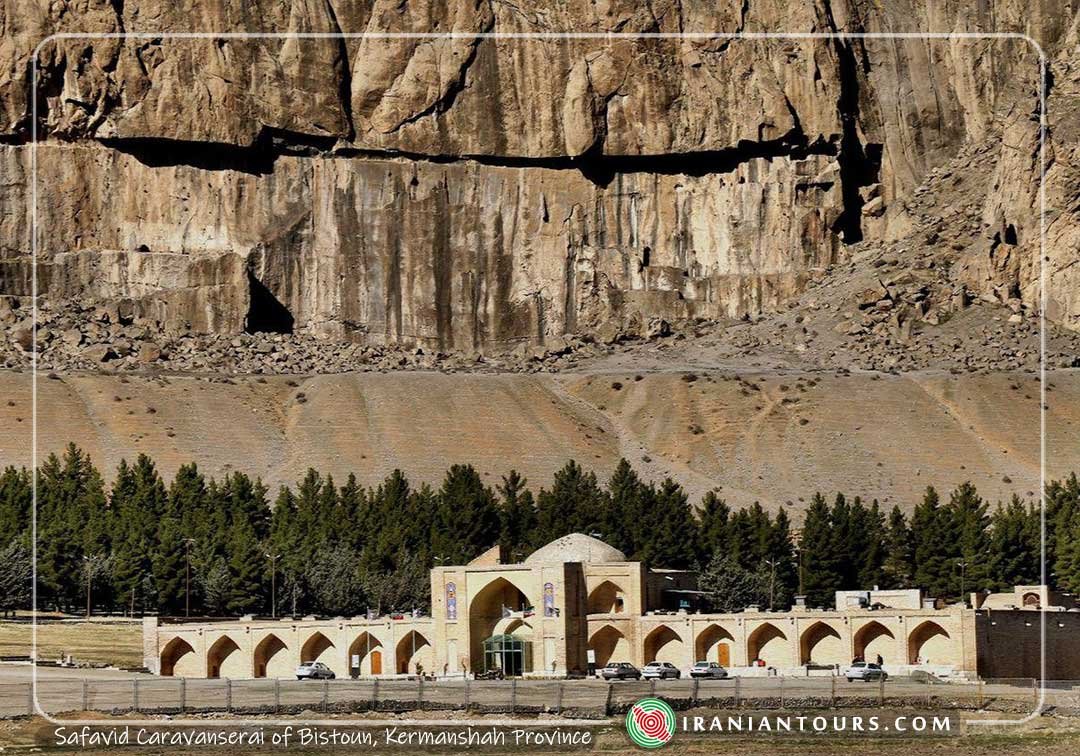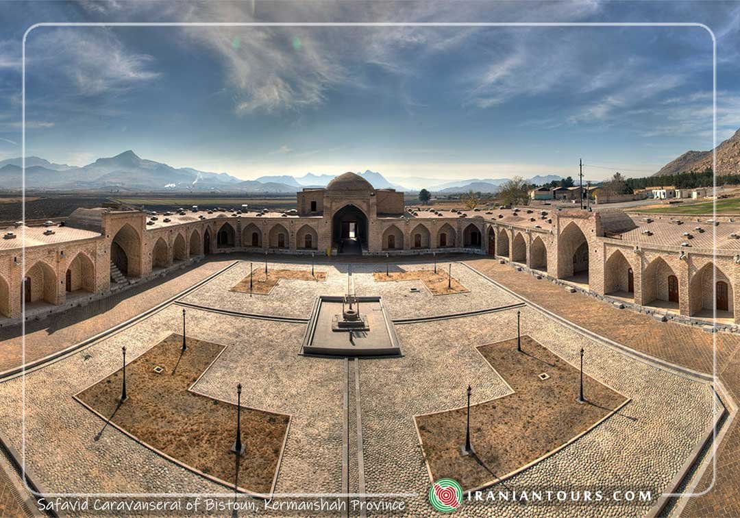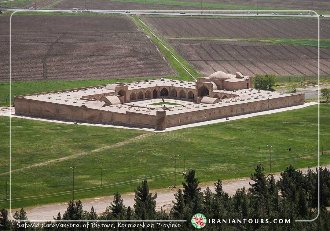 Bisotun caravansary, also known as Sheikh Ali Khan Caravanserai, is located in Bisotun and has four porches. It was built by Sheikh Ali Khan Zanganeh in a rectangular in form. Around its rectangular courtyard there are 47 rooms for travelers. The caravansary has 4 circular towers in four corners and 14 rooms along the entrance. With respect to the type of material used for construction, the structure dates to the Safavid era. But in its foundation, carved stones of the Sassanid period can be seen. In Bisotun. some other caravansaries constructed on different plans can be also observed. These are related to the late Sassanid and early Islamic periods.