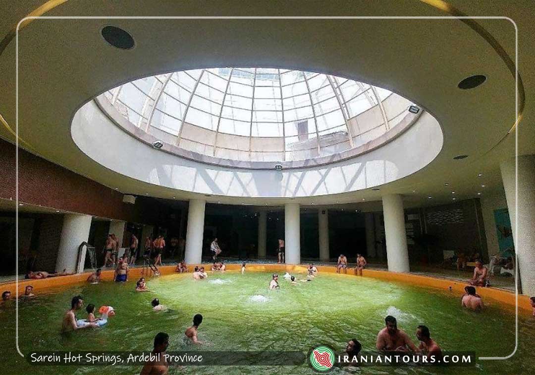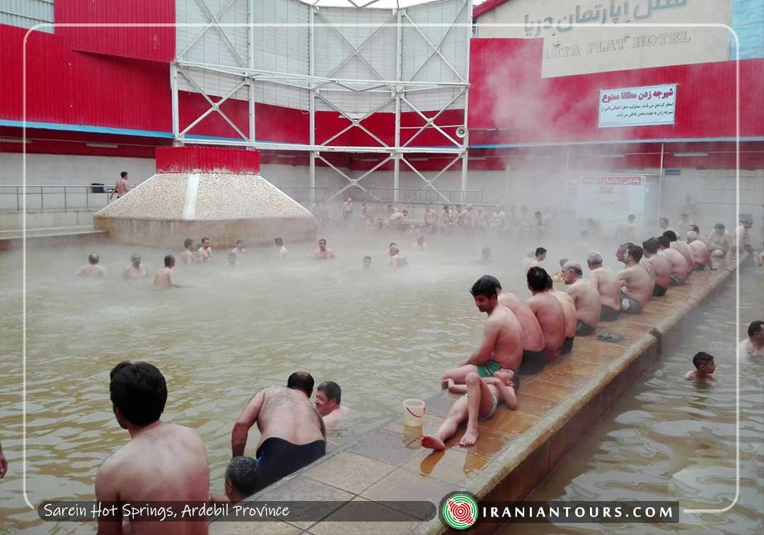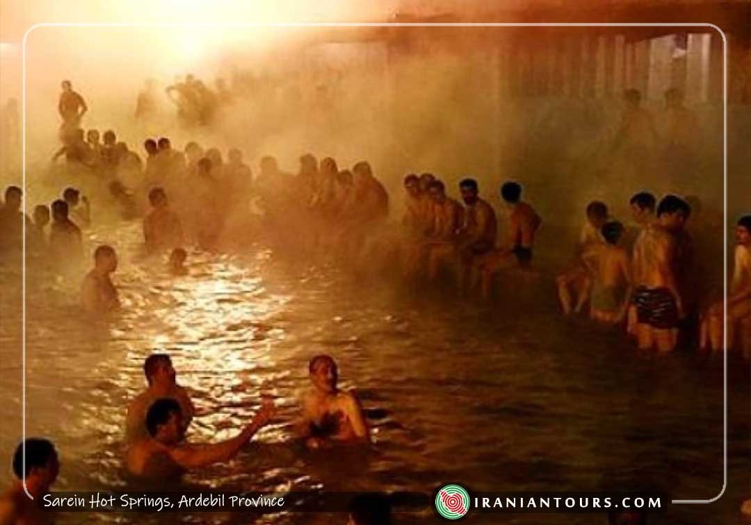 There are dozens of hot springs across Sarein region, near inactive Mt. Sabalan volcano. The water contains sulphur particles and is believed to be good for bone and joint pains.