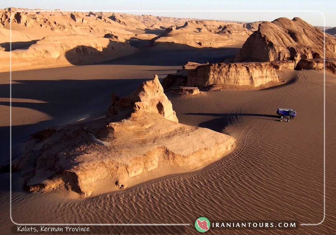 One of the most exciting geomorphological structures of Lut is the special bumps called Kalut which is the biggest natural clod structure in the world; they are the most unique structures in the desert. Kalouts are similar to parallel tunnels which are positioned from northwest to northeast. Kaluts are 80 km in width, 145 km in length, and in some cases 120 meters high; they are located in the west of Central Lut at a distance of 43 kilometres from Shahdad. From a distance, Kaluts look like the ruins of a big legendary city with grand palaces and buildings both short and high. In fact, these Kaluts were created by wind and rain, and they are very attractive.