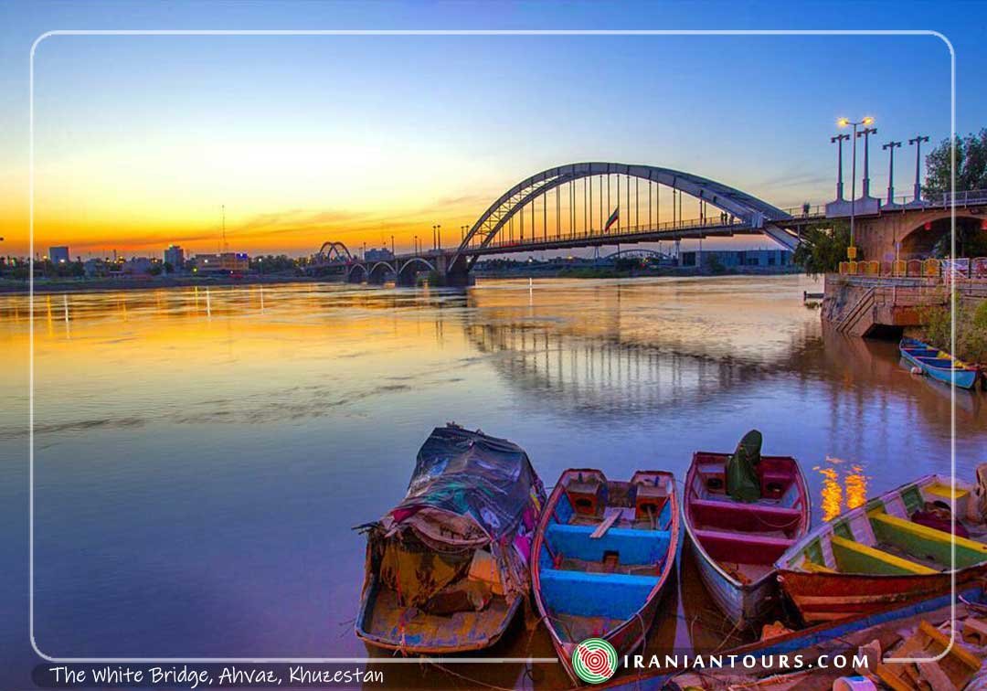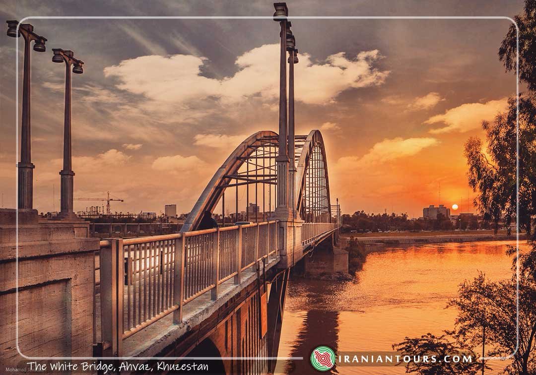 White bridge or Arches Bridge is the first suspension bridge of Iran, the fourth steel suspended bridge in all around the world built less than 50 years after the establishment and opening of Brooklyn Bridge (the first steel bridge of the world), which was built by a German engineer family on the Karoon beautiful river with two concrete arches of 12 and 20 m on a concrete foundation in the centre of Ahvaz in 1315.