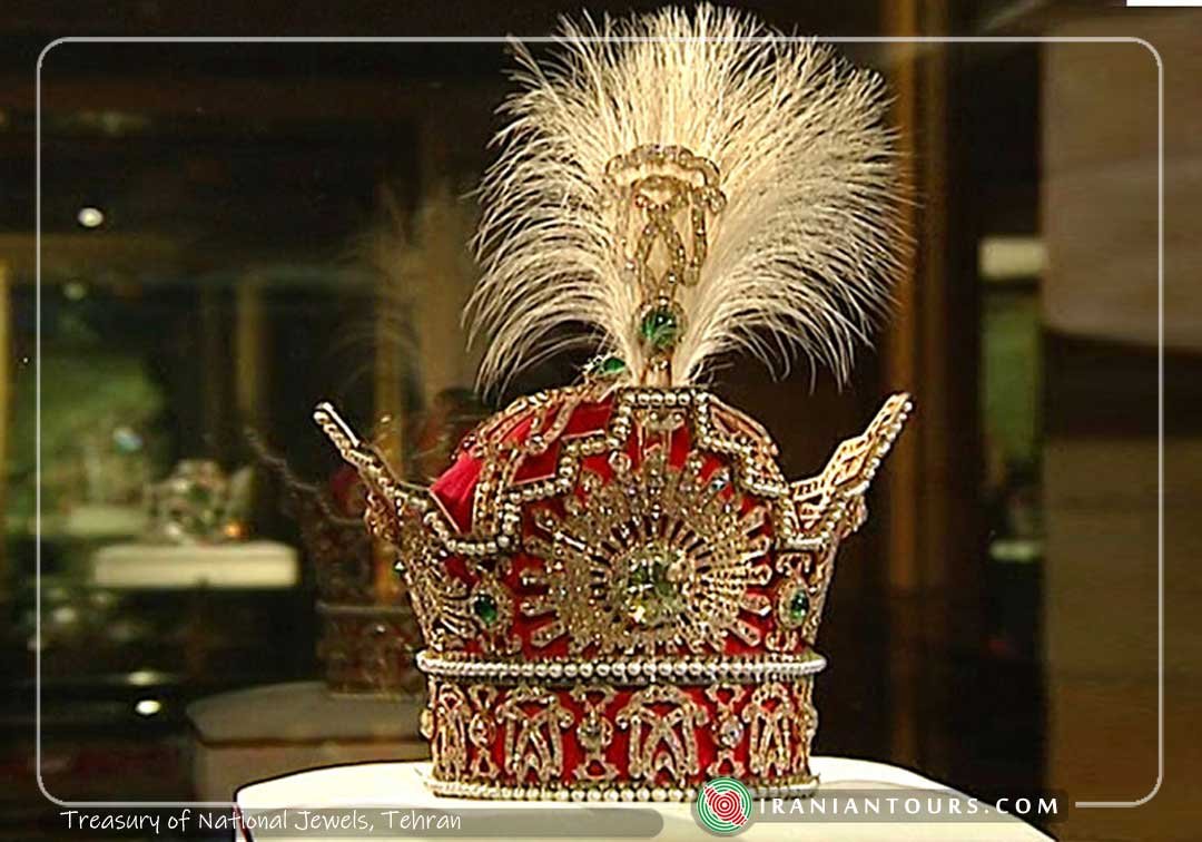 The crown of Fath-Ali Shah named Taj-e Kiani (Kiani Crown), which is decorated with emeralds, diamonds, rubies, and pearls; it was also worn by the subsequent Qajarid Kings.