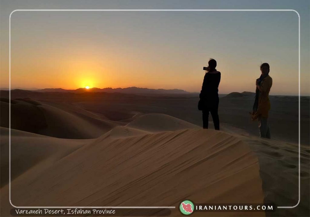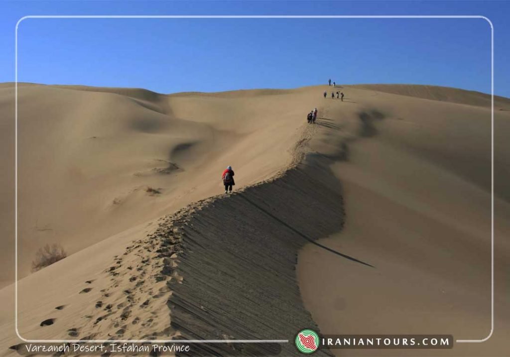 Varzaneh is a town near Isfahan, located in a desert with spectacular sand dunes and the wetland of Gavkhooni which is a terminal lake at the end of Zayandeh-Rud river.